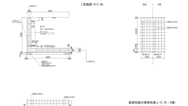 【擁壁工】擁壁構造図のサンプル|PDF、Jw_cad、DXFデータ