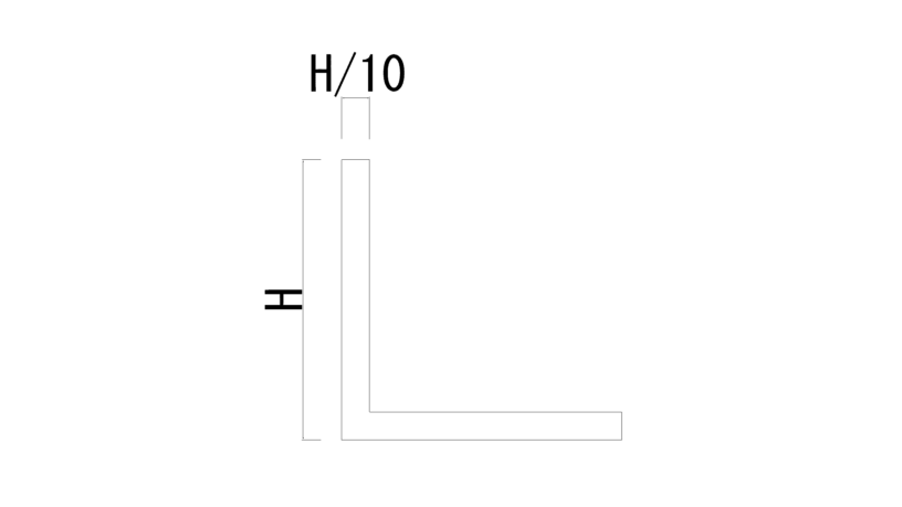 早速結論ですが、壁厚は擁壁全高(H)÷10が目安です。
